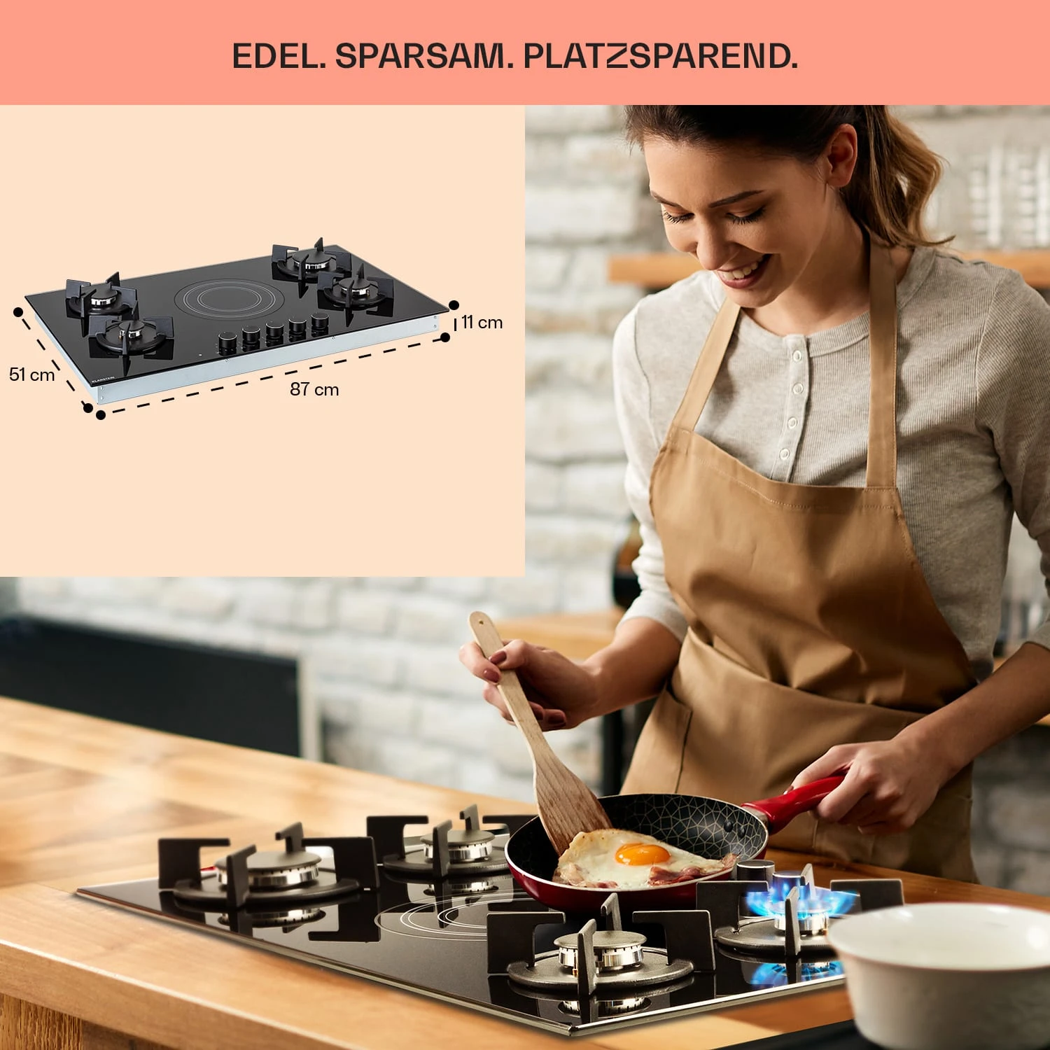 - 9,2 kW aufgeteilt auf 5 Kochzonen